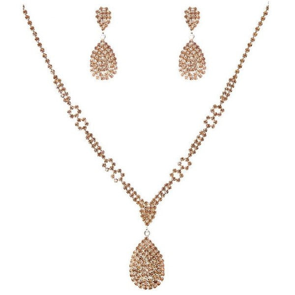 - The 3D tear drop dangle design adds an elegant touch to this rhinestone necklace set.
