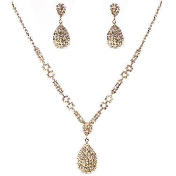 3D Tear Drop Dangle Basic Rhinestone Necklace Set