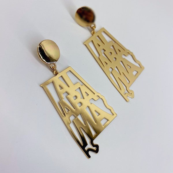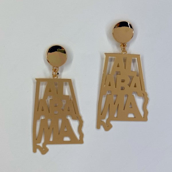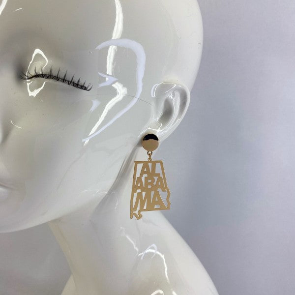 Gold Finish Post Back Earring With Alabama State Outline Dangle Measurement : 2.5 in L Approx