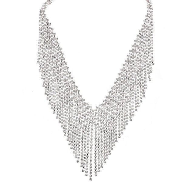 -Bold and chunky, this rhinestone tassel necklace adds a touch of elegance to any outfit.