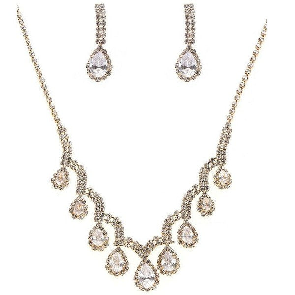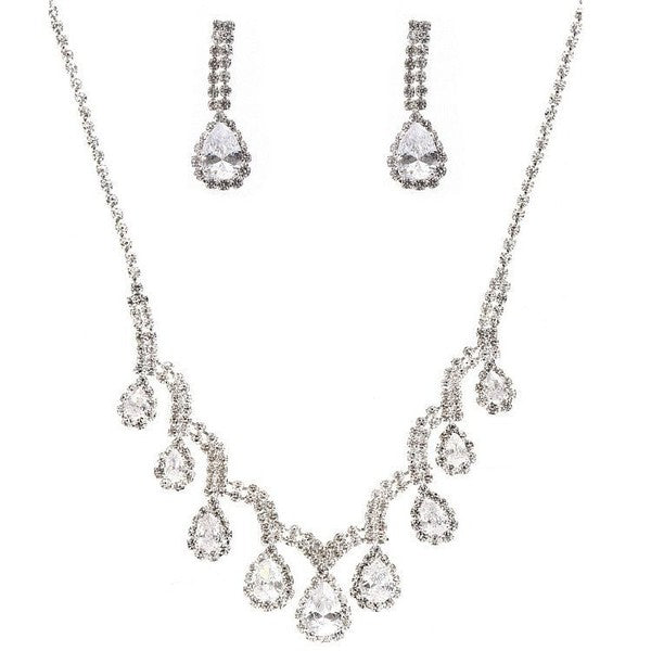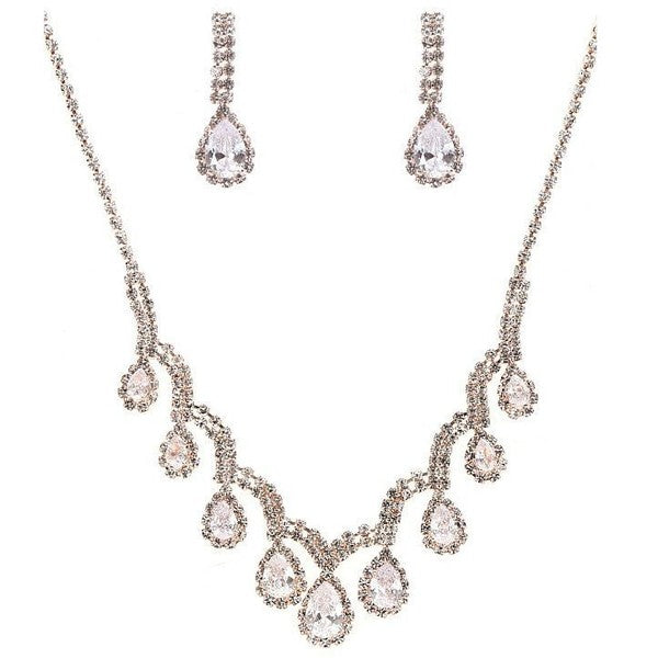 - This stunning necklace set features a connected wave design with shimmering pear rhinestones, making it a unique and elegant piece