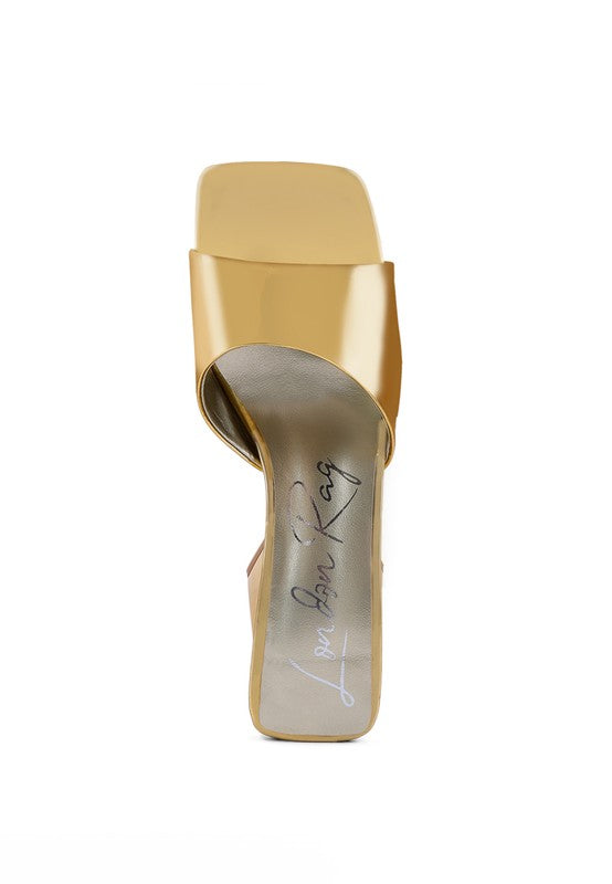 Shine high in metallics and statement PU these block slip on are a show-stopper. The high block heeled slider sandals can be paired with any dress to make your look glam.
