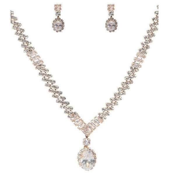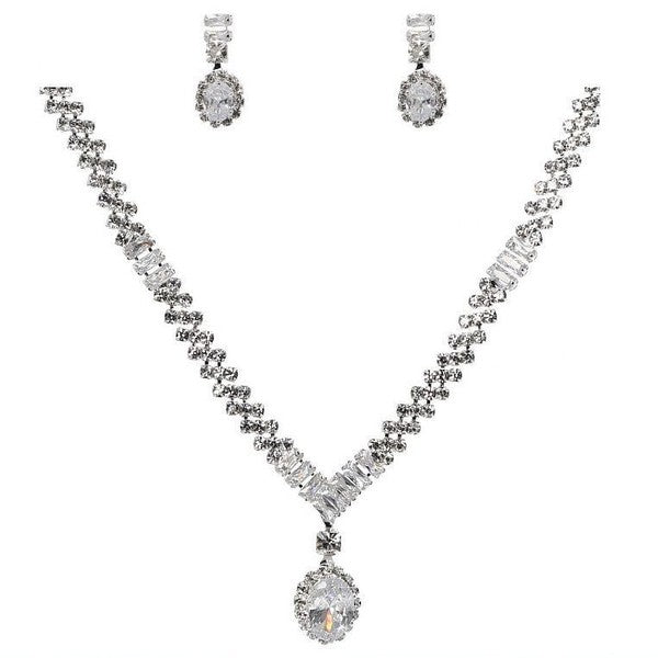 Baguette Oval Dangle CZ Necklace Earrings Set