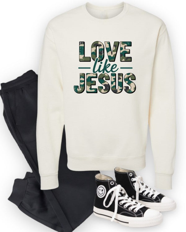 Camo Love Like Jesus Graphic Crewneck Sweatshirt
