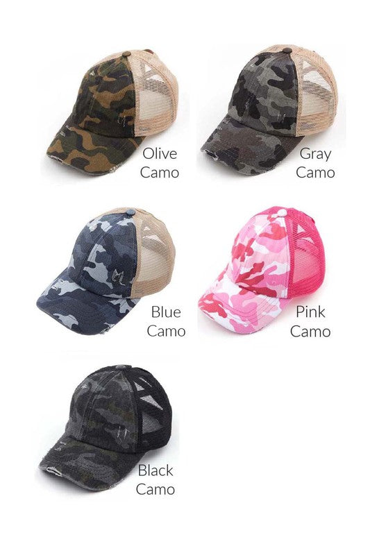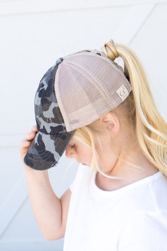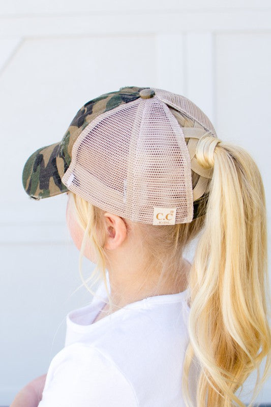 Girls CC Criss-Cross Ponytail Caps-Camo