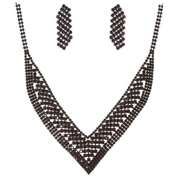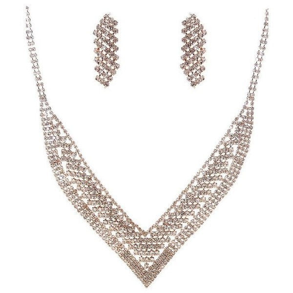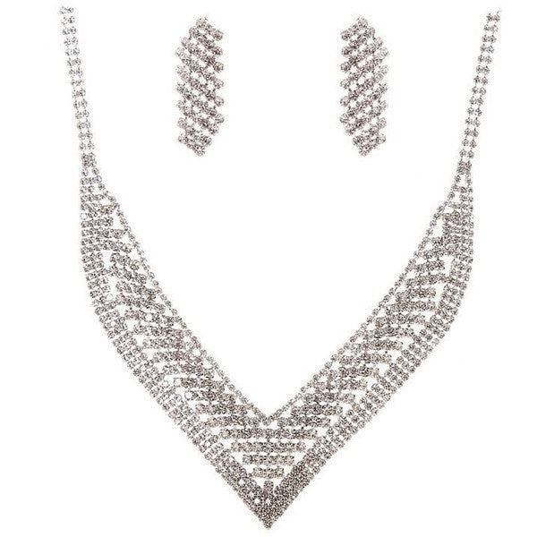 - This glamorous necklace set features a stunning bib design with a V shape, embellished with sparkling CZ stones.