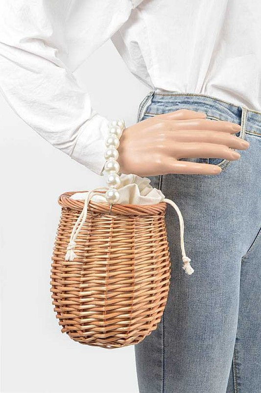 Pearl Handle Iconic Bamboo Bucket Clutch Bag