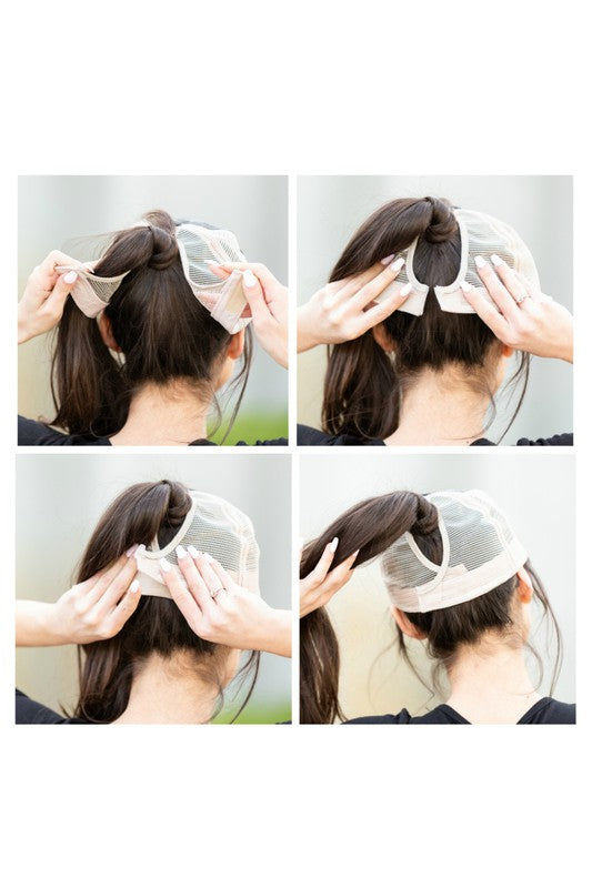 Put your hat on AFTER you make your messy bun with our unique closure, giving you the perfect fit every time!