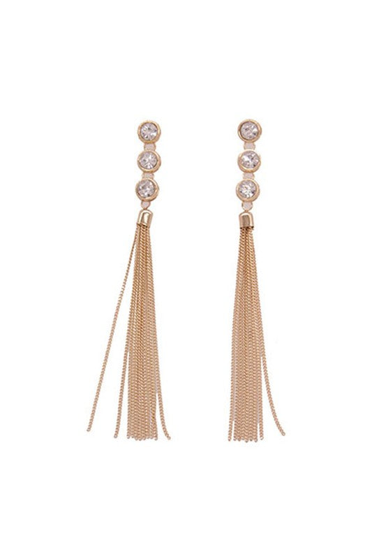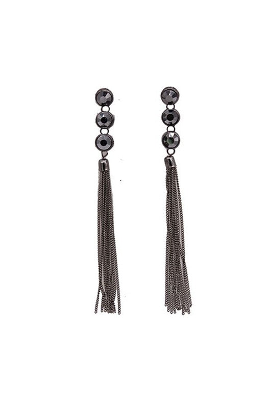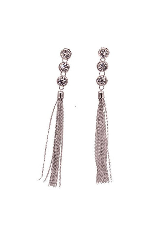 RHINESTONE DROP TASSEL METAL EARRINGS