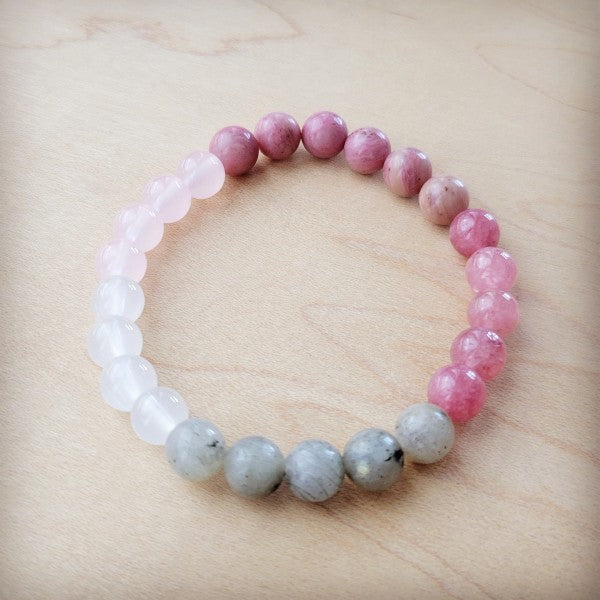 Rose Quartz & Labradorite Stretch Beaded Bracelet