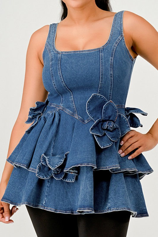 Ruffle Bloom Denim Peplum Top