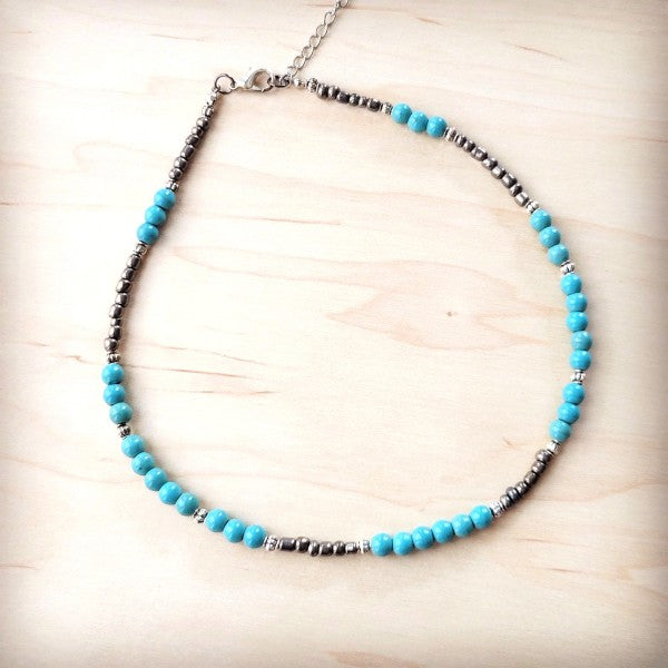 This boho beaded necklace is the unique handmade jewelry piece you've been looking for! Just longer than a boho choker necklace, this collar-length necklace works well with any outfit and can be dressed up or down. Layer it with long boho necklaces, pair it with some leather earrings, or wear it by itself as a boho statement necklace.