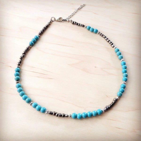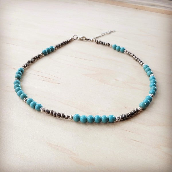 -Materials: silver-tone beads and genuine Howlite Turquoise stones
