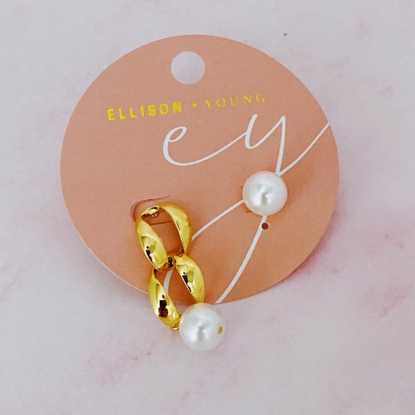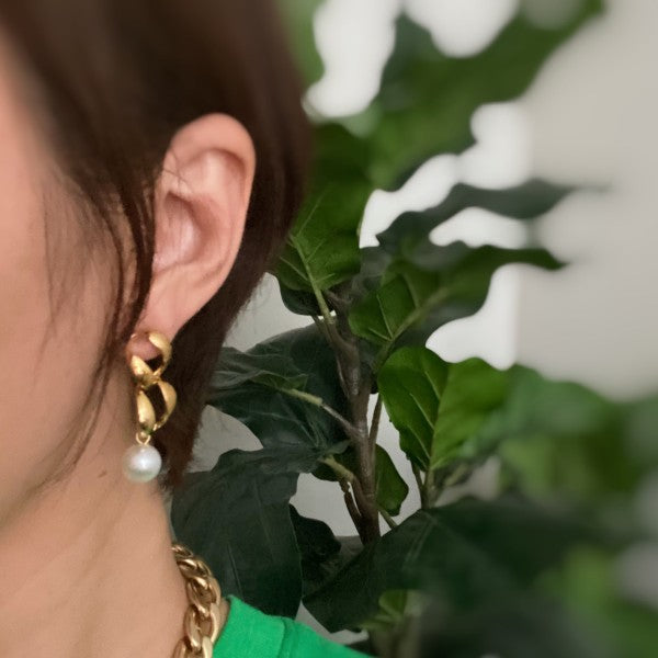 These unbalanced hip pearl earrings make a fashion statement with their hip and edgy design. Featuring a pearl dangling from a chain drop on one side, and a matching pearl stud on the other, these unique and stylish earrings make a great addition to your jewelry collection.