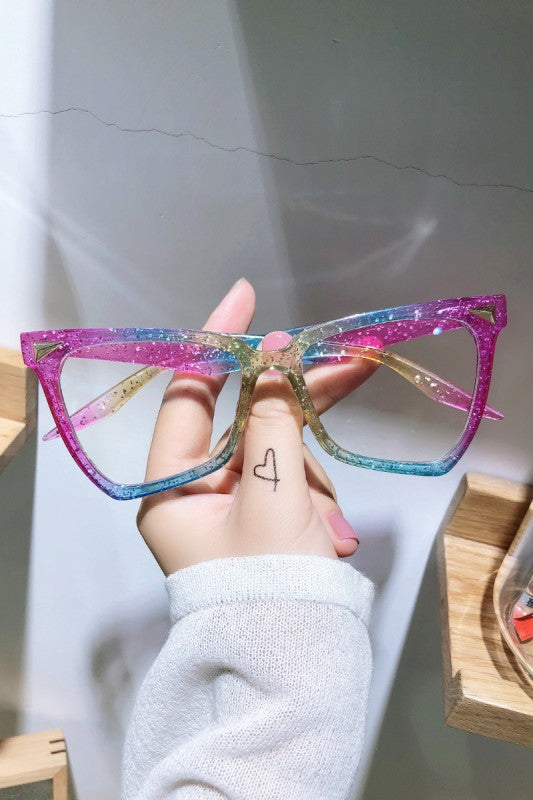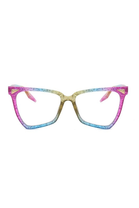 Trendy geometric blue light eyeglass with a playful gradient design and subtle sparkle for a fun yet stylish everyday look.